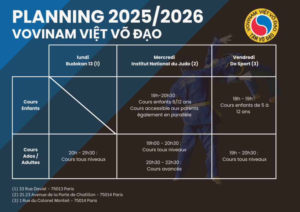 Calendrier des cours pour l’année 2025 / 2026